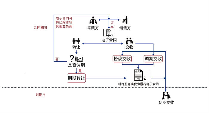 第四条 “转让”是指合同持有者将签订的电子合同转让给其他市场参与者的交易行为。转让双方电子合同到期时间不一致时,由特许服务商进行调期结算。